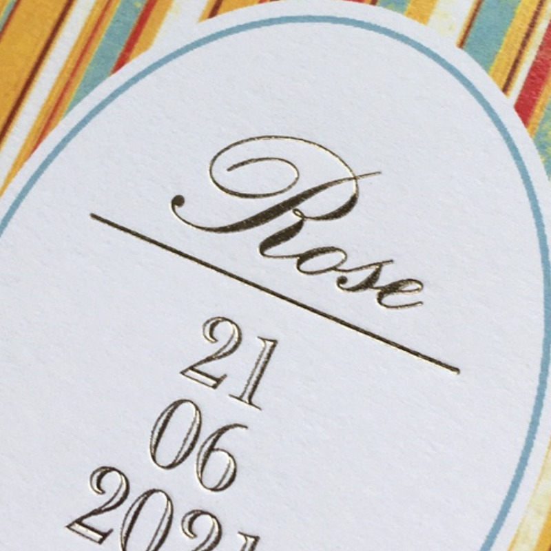 Dorure à chaud or pour les prénoms et la date en couverture