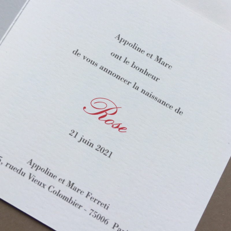La Petite Baleine vous propose de personnaliser votre modèle en choisissant la couleur de la gravure du prénom et de la date de la couverture puis les typographies et texte de votre faire-part.